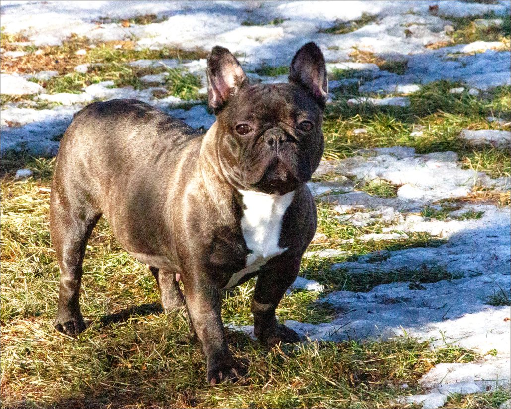 Along with some continued noisy breathing, Aja also has some pesky Frenchie allergies which are pretty well controlled with regular medicated baths and avoiding common allergens in her diet like beef and chicken. She is mostly house trained, signaling near the door when she needs to go out but she does have a few accidents here and there. Her new family must be patient and not mind cleaning up a little after her.