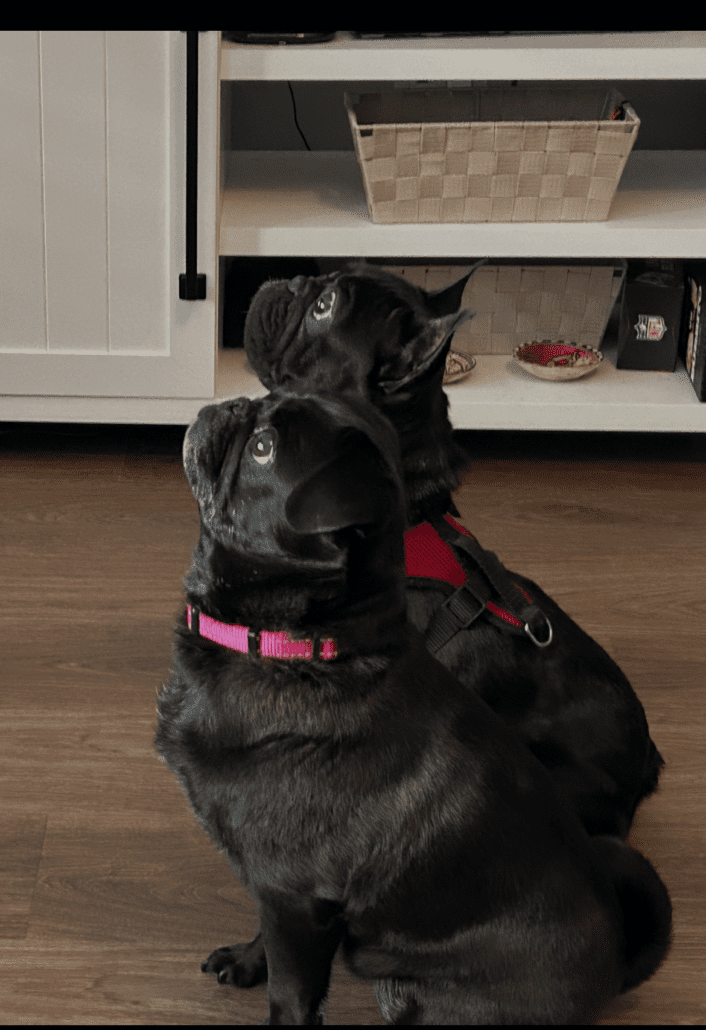 “She is an even mixture of curious, cautious and a people pleaser. She is strong and fierce but also cute and snuggly. She will happily take the lead or blend in the back. She has learned that by sitting nice and patiently starring at the human will get her what she really wants. She does not like to be outside often. She likes walks but only short walks on cement. She doesn’t do hiking or adventure.”