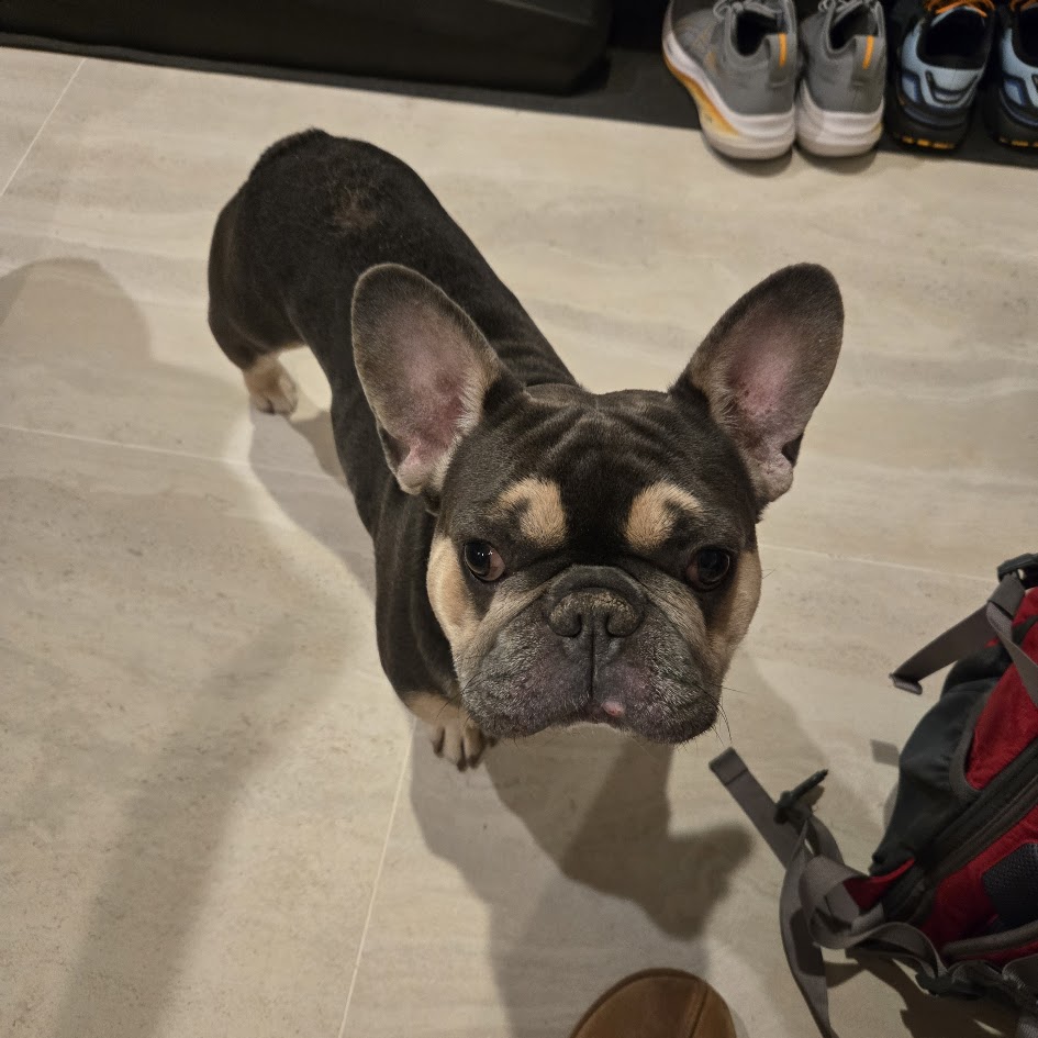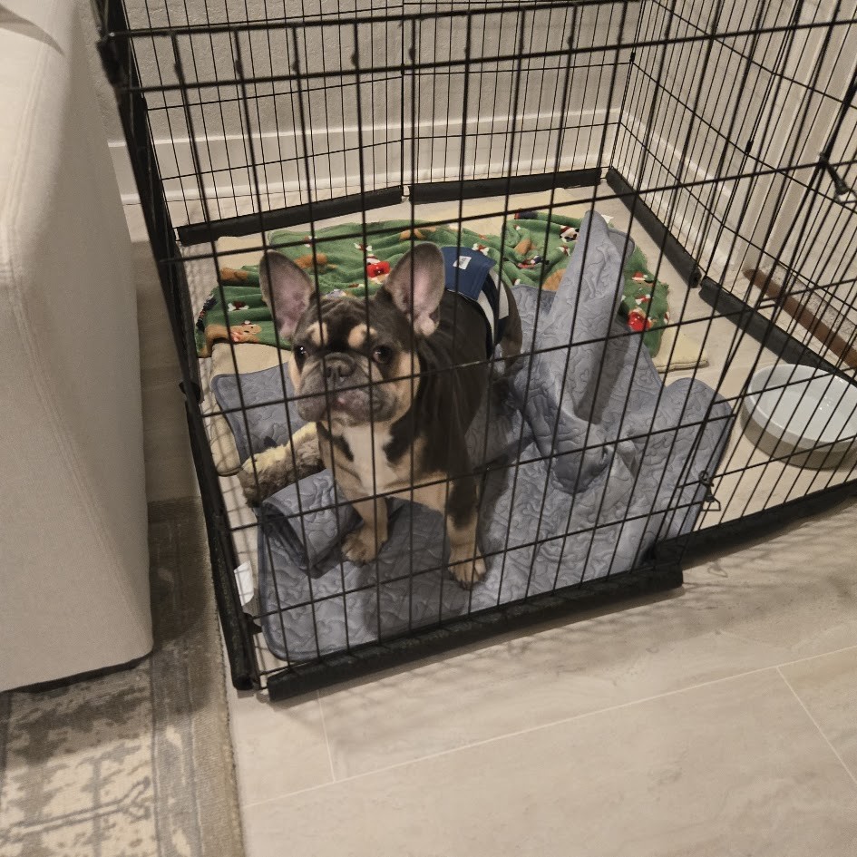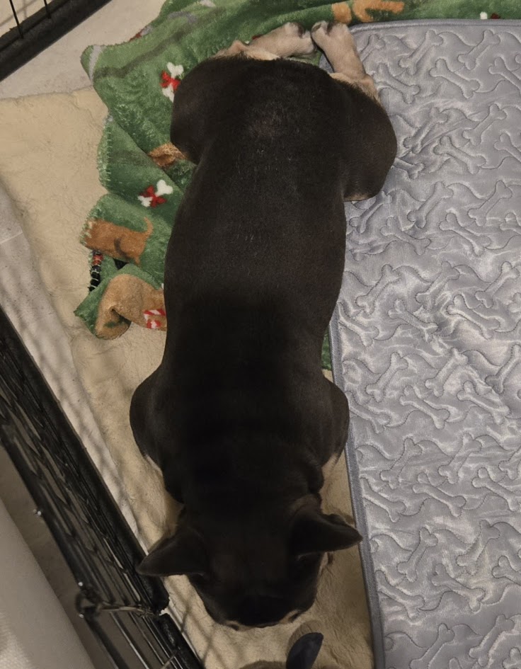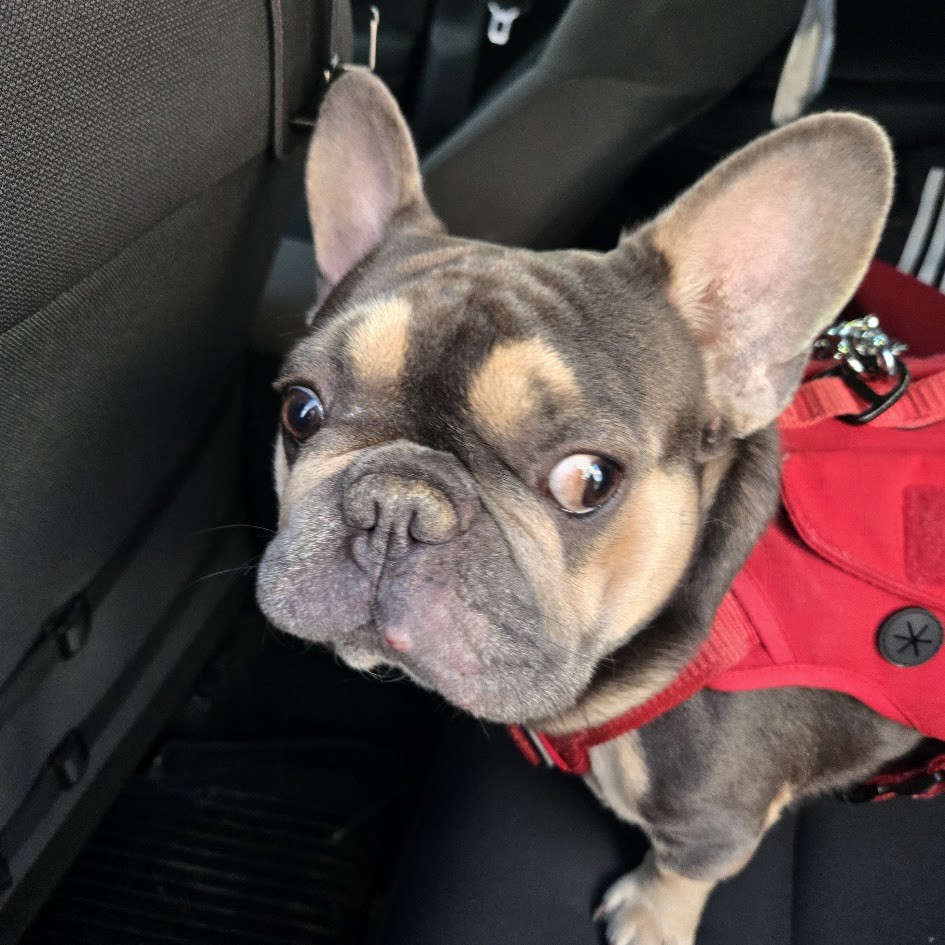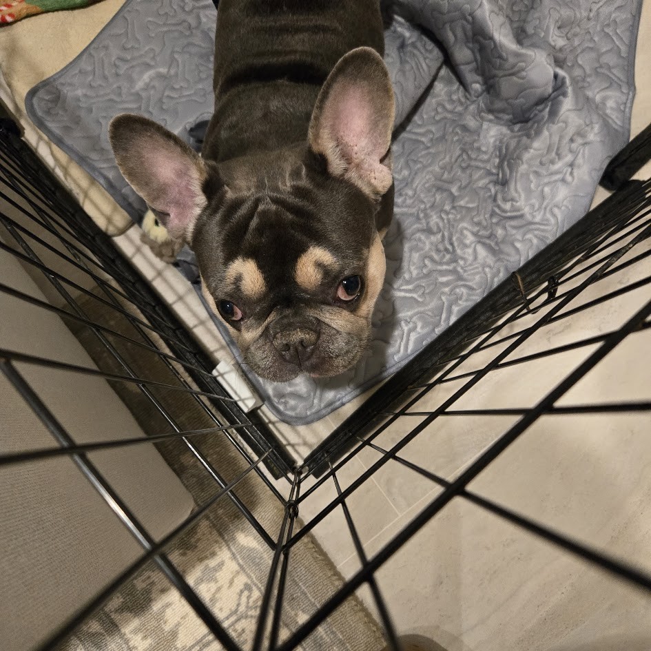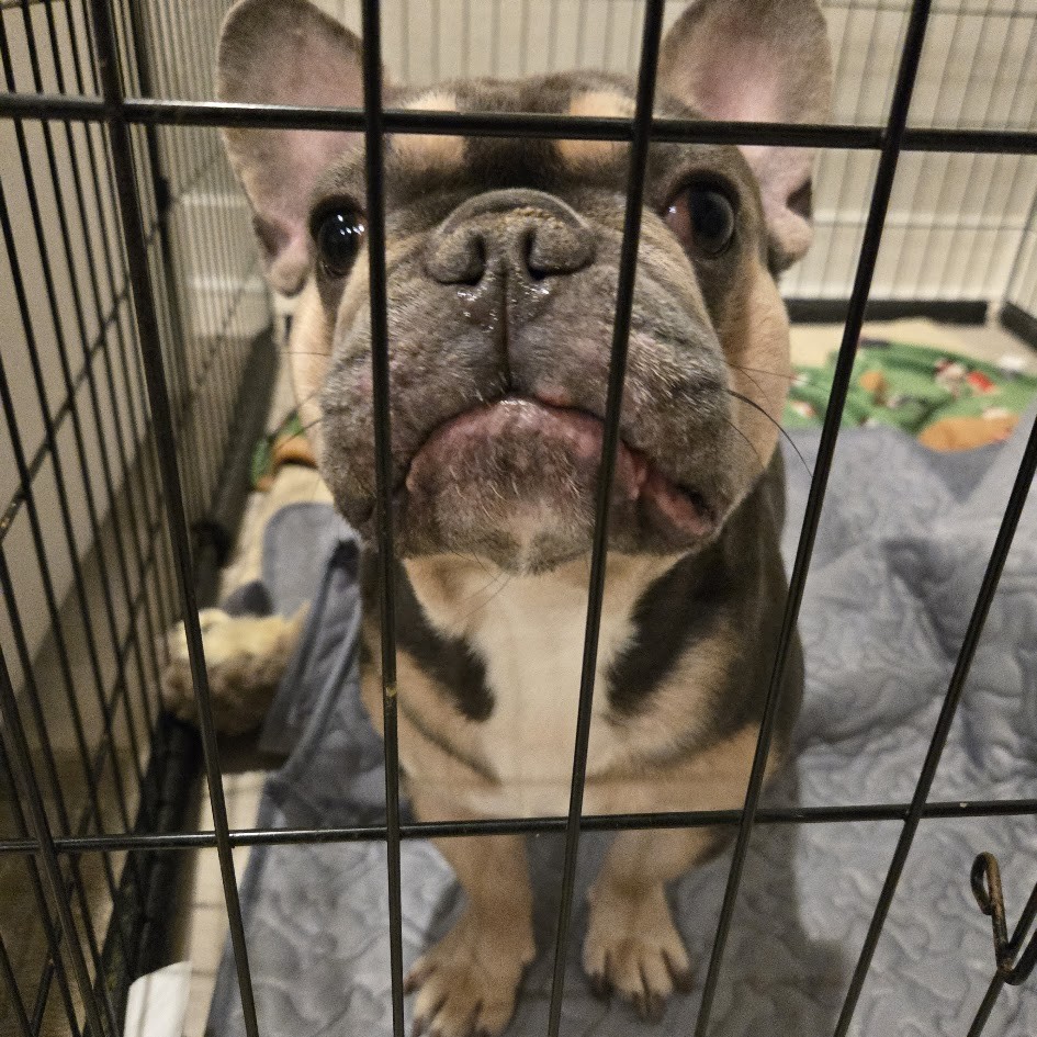 Lou arrived with some classic Frenchie concerns, including itchy skin, gunky ears, and a case of hookworm, which is already being treated. His neuter is also on the schedule, so he is well on his way to feeling his best.